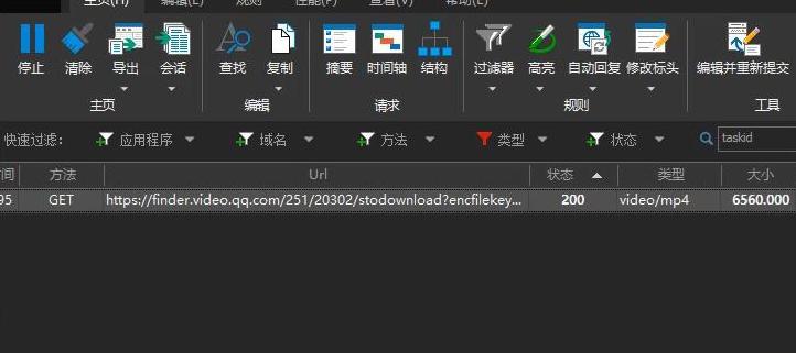 2.再筛选关键词:taskid(不要问为什么是这个,因为只有包含这个参数的链接才能正常播放)