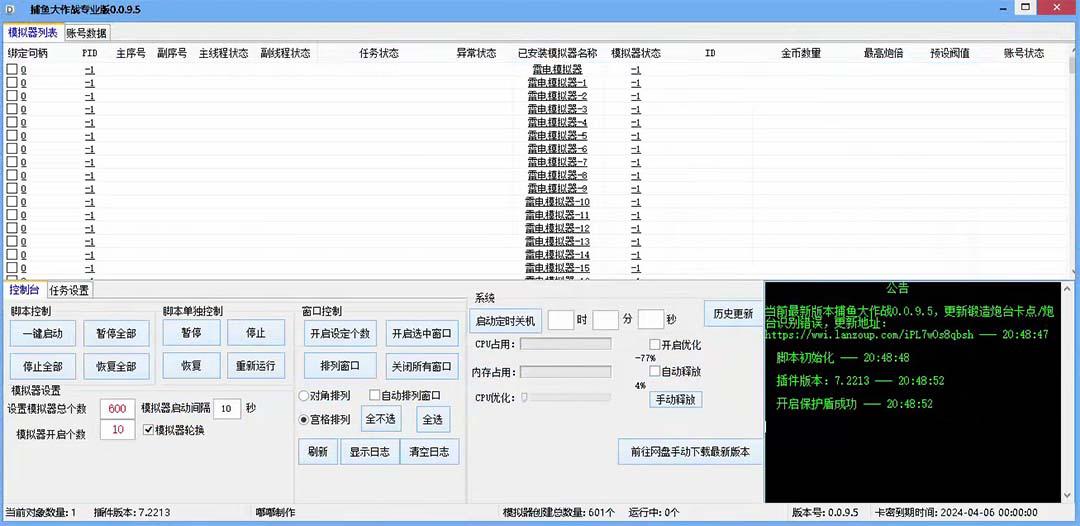 全自动挂机,全自动签到列表,全自动领取各种活动,全自动捕鱼,全自动升炮,全自动切换账号,全自动安装游戏安装包,内存识别金币图片,封号成品自动更换账号。