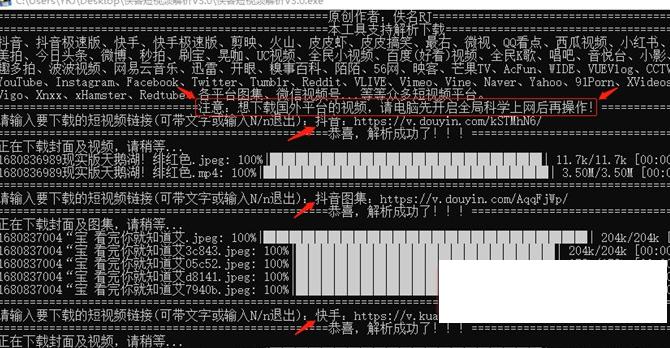 请输入要解析的短视频链接时可以不用删除文字但必须在同一行(中间请勿有空格或换行)