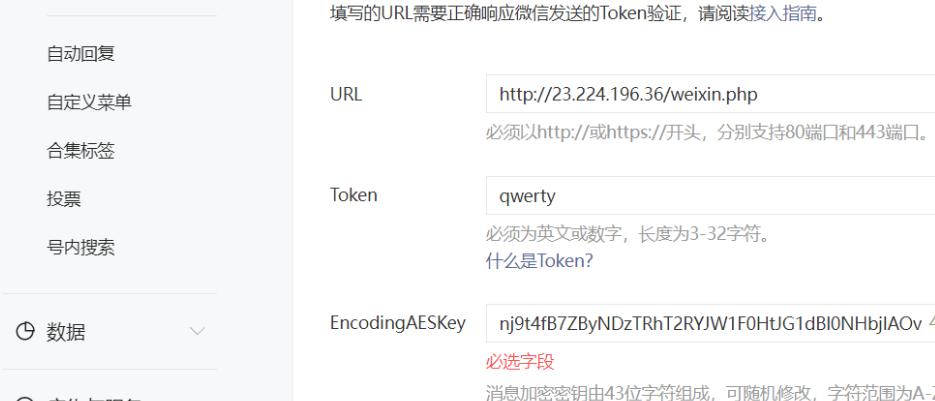- 前往公众号基本配置页面,点击修改配置并按图填写相应信息。