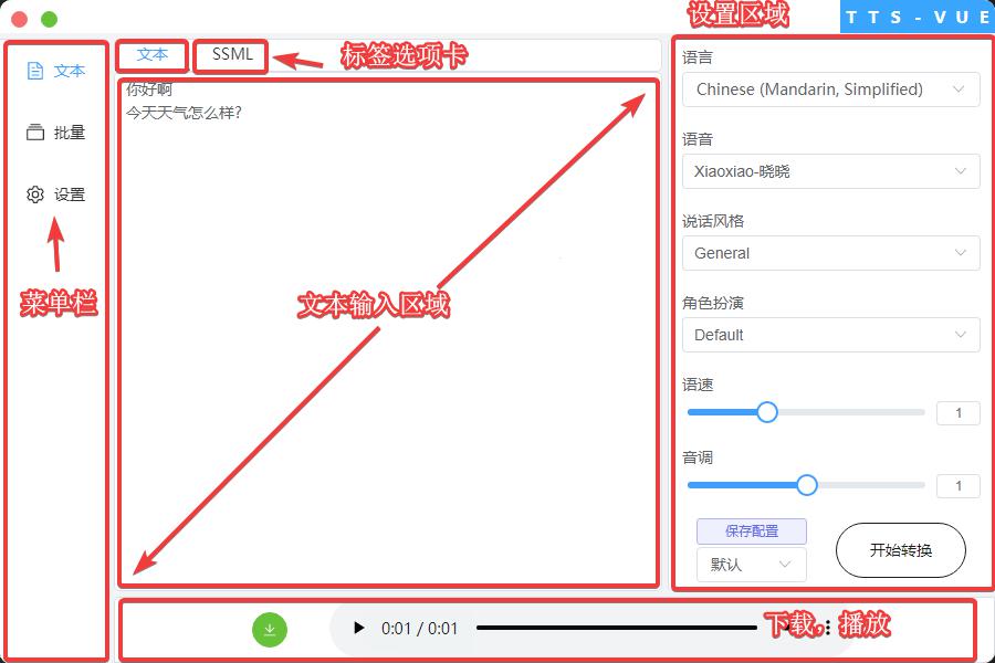 微软语音合成工具,使用 Electron + Vue + ElementPlus + Vite 构建,将文字转为语音MP3。