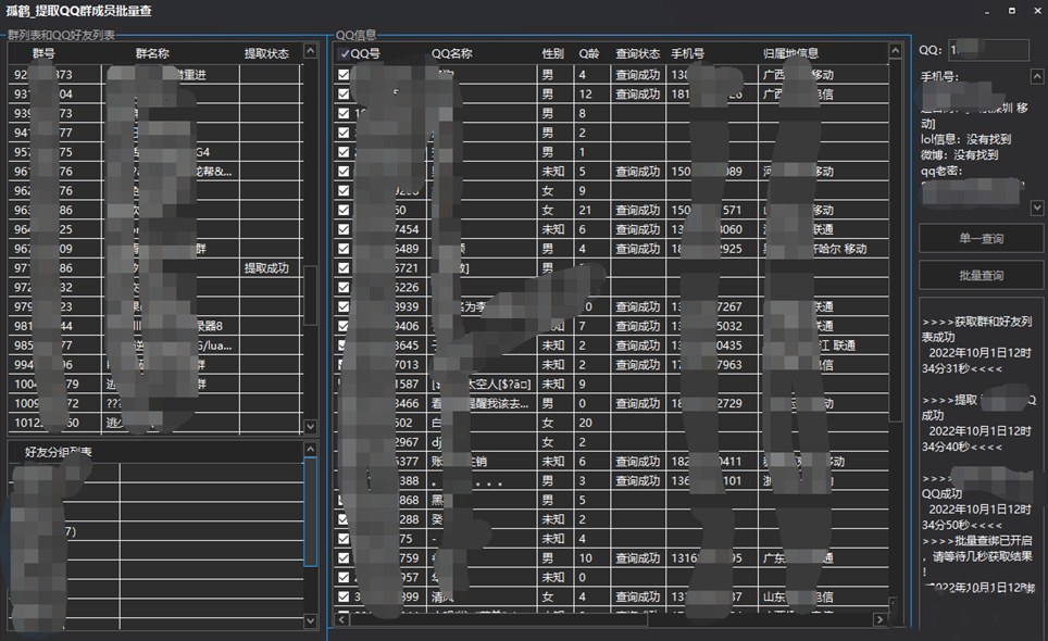 (2425)电脑批量提取QQ群成员+查扣绑工具 电脑工具/软件 22年10月4日 编辑 前往下载 船长乃歌 取消关注 关注 私信 接口的话使用的是之前分享过的接口,有的就不用重复下载了。提取Q群成员需要手机扫码登录! 下载权限查看 ¥ 免费下载 评论并刷新后下载 登录后下载 查看演示 {{attr.name}}: 您当前的等级为 登录后免费下载登录 小黑屋反思中,不准下载! 评论后刷新页面下载评论 支付¥以后下载 请先登录 您今天的下载次数(次)用完了,请明天再来 支付积分以后下载立即支付 支付以后下载立即支付 您当前的用户组不允许下载升级会员 您已获得下载权限 您可以每天下载资源次,今日剩余次 1.清辉网不销售除【会员服务】之外的任何物品 2.单个内容付费只是清辉网整理服务费用,内容为免费分享 3.本站的任何内容仅限于学习,请勿用于违法领域,违者自行承担一切责任 实用工具