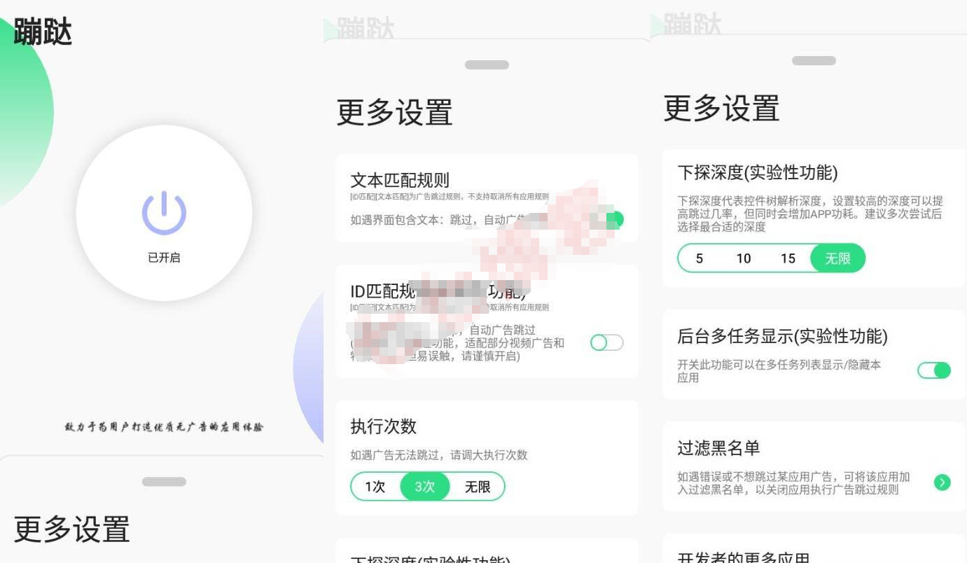 蹦跶app是一个专门跳过开头广告的软件。这款软件可以帮助你智能的拦截很多的垃圾信息,你还可以在这里设置自动跳过广告的功能,让你在打开app的时候不会再有广告的困扰,是非常高效的一款软件。