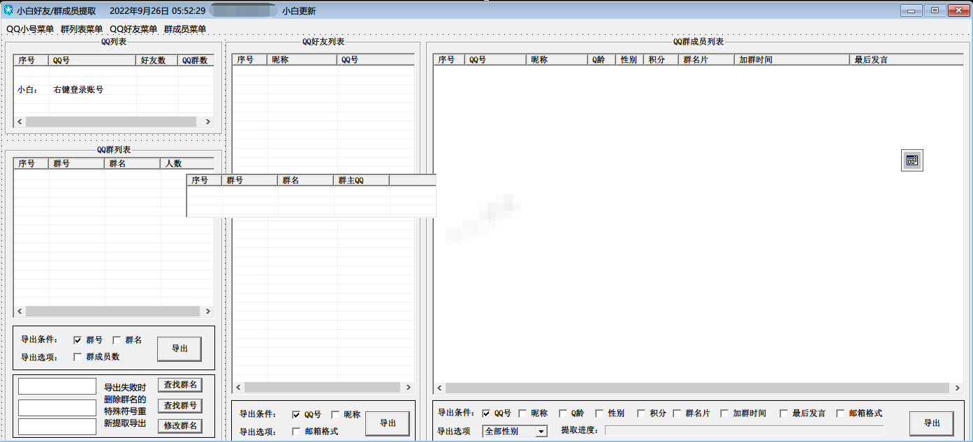 (2549)QQ群成员提取器源码 小白修复版 电脑工具/软件 22年10月15日 编辑 前往下载 船长乃歌 取消关注 关注 私信 模块就不打包了相信玩易语言的电脑里都有,那个皮肤模块没有的话删除引用代码即可。 下载权限查看 ¥ 免费下载 评论并刷新后下载 登录后下载 查看演示 {{attr.name}}: 您当前的等级为 登录后免费下载登录 小黑屋反思中,不准下载! 评论后刷新页面下载评论 支付¥以后下载 请先登录 您今天的下载次数(次)用完了,请明天再来 支付积分以后下载立即支付 支付以后下载立即支付 您当前的用户组不允许下载升级会员 您已获得下载权限 您可以每天下载资源次,今日剩余次 1.清辉网不销售除【会员服务】之外的任何物品 2.单个内容付费只是清辉网整理服务费用,内容为免费分享 3.本站的任何内容仅限于学习,请勿用于违法领域,违者自行承担一切责任 实用工具源码