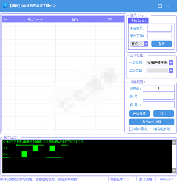 导入小号ck,是手机端的就可以,PC端无视;支持查询群等级,循环举报,QQ和群,需要有间隔。