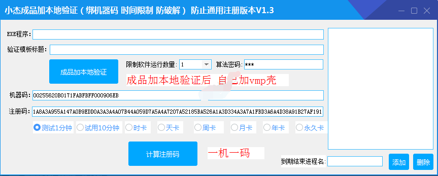 (3171)小杰成品软件本地加密工具,可绑定机器码限制时间 电脑工具/软件 22年11月25日 编辑 前往下载 船长乃歌 取消关注 关注 私信 注意:是本地机器-注册码验证并非网络验证~ 下载权限查看 ¥ 免费下载 评论并刷新后下载 登录后下载 查看演示 {{attr.name}}: 您当前的等级为 登录后免费下载登录 小黑屋反思中,不准下载! 评论后刷新页面下载评论 支付¥以后下载 请先登录 您今天的下载次数(次)用完了,请明天再来 支付积分以后下载立即支付 支付以后下载立即支付 您当前的用户组不允许下载升级会员 您已获得下载权限 您可以每天下载资源次,今日剩余次 1.清辉网不销售除【会员服务】之外的任何物品 2.单个内容付费只是清辉网整理服务费用,内容为免费分享 3.本站的任何内容仅限于学习,请勿用于违法领域,违者自行承担一切责任 实用工具