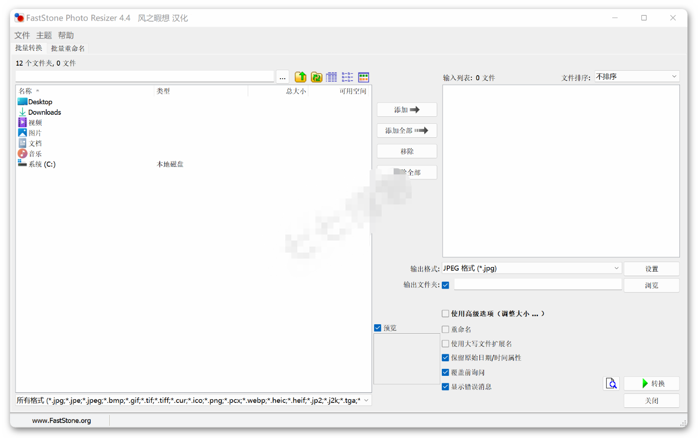 FastStone Photo Resizer 是一款强大的图像批量转换工具,支持图片格式转换、重新命名、裁切、重新定义图片大小、旋转视图、添加注释、水印等等等等丰富的功能。它让您不再需要安装庞大的图像编辑软件,就可以轻松为照片瘦身,并实现简单的编辑。支持鼠标拖放操作,大大提高操作效率,节省照片处理时间。