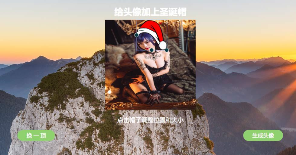 单的源码,就一个html页,选择帽子合成一下,一共10内置了10款帽子,有能力的可以自己在添加更多帽子