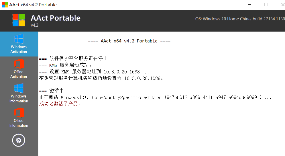 一款小巧实用的全能KMS激活工具,可以自动设置密钥管理服务激活微软Windows、Office产品。支持离线KMS激活,安装及删除激活产品密钥、创建及删除续期计划任务,该工具无需.NET Framework框架,相比其它激活工具,体积小巧、单执行文件、绿色无残留,激活成功率高!