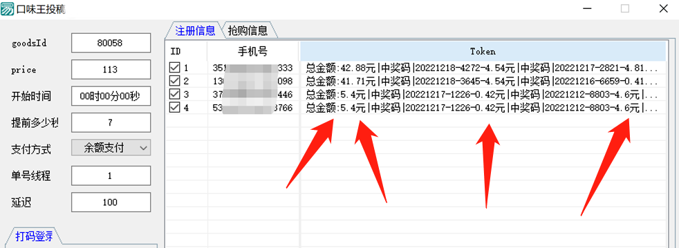 3、把token导入到养号软件中,左边的那些充值、支付不用管,直接在左下角选择要运行的功能即可,一般是全部任务→兑换880
