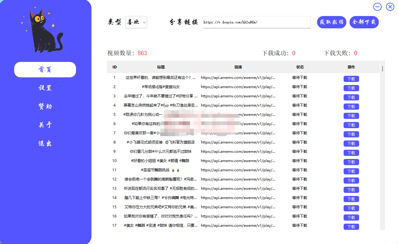 (3475)VideoCat(视频猫) 抖音视频一键批量爬取下载工具 电脑工具/软件 22年12月23日 编辑 前往下载 船长乃歌 取消关注 关注 私信 软件功能 目前支持爬取页面:主页、喜欢、合集,下载方式:一键下载 、单独下载 下载权限查看 ¥ 免费下载 评论并刷新后下载 登录后下载 查看演示 {{attr.name}}: 您当前的等级为 登录后免费下载登录 小黑屋反思中,不准下载! 评论后刷新页面下载评论 支付¥以后下载 请先登录 您今天的下载次数(次)用完了,请明天再来 支付积分以后下载立即支付 支付以后下载立即支付 您当前的用户组不允许下载升级会员 您已获得下载权限 您可以每天下载资源次,今日剩余次 1.清辉网不销售除【会员服务】之外的任何物品 2.单个内容付费只是清辉网整理服务费用,内容为免费分享 3.本站的任何内容仅限于学习,请勿用于违法领域,违者自行承担一切责任 实用工具抖音