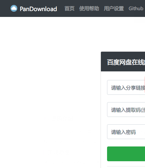 PanDownload 网页复刻版,PHP语言版,PanDownload在线解析下载的优点,速度快,受用户自身带宽限制,就是说你的宽度交多少决定你下载的速度,不用下载百度网盘客户端,你可以直接使用解析所得到的直链一键下载,在线下载,不用下载任何附带客户端,直接解析下载。