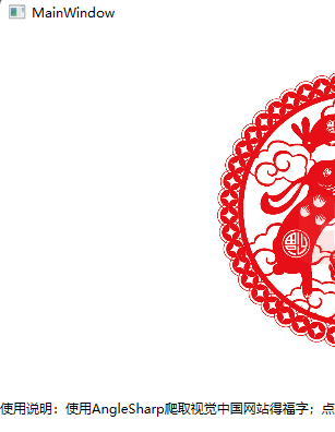 本助手的作用就是快速找到不同的福字,用户运行次程序后只需点击下一张就可获取一个全新的福字。集福助手采用WPF框架开发,目前仅支持Window平台运行,基于.NetFramework4.8开发,爬虫框架选用的是AngleSharp。打开界面左边显示的是福字图片,用Image控件承载,右边是下一张的按钮,底部是使用说明。为尽可能避免一切可能发生的不可控问题,本程序爬取间隙会设置程序休眠1s,当点击下一张后没有反应需要耐心等待几秒中。