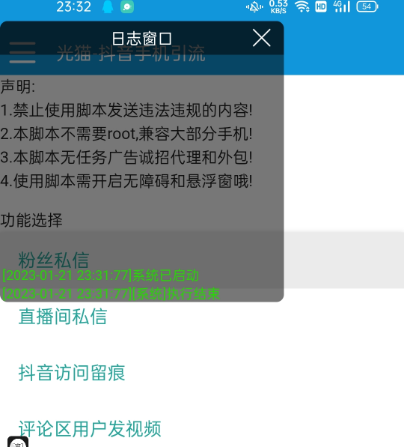 内置三款独立脚本,脚本支持抖音作品评论引流,支持粉丝私信,访问留痕,评论区私信,并具备模拟人工自动养号功能。
