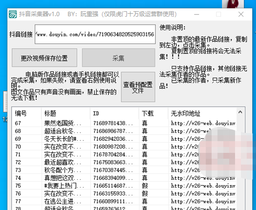 复制手机分析作品链接(如:V.DOUYIN.CON/XXXXXX)或者复制电脑端链接(如:https://www.douyin.com/video/xxxxxxxxxxxxx)然后采集就可以了。