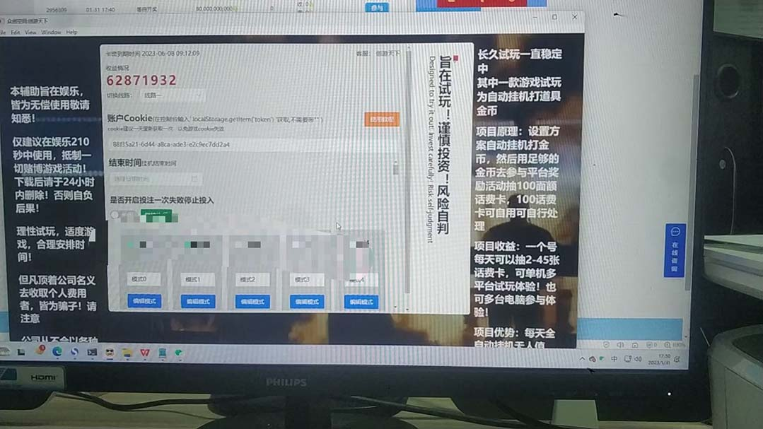 跟豆豆玩差不多,创游天下也是一个休闲益智的游戏平台,新人注册可以获得10万金豆,,然后可以拿脚本挂机使用金豆用来竞猜,竞猜金豆达到后可以用来兑换话费卡。