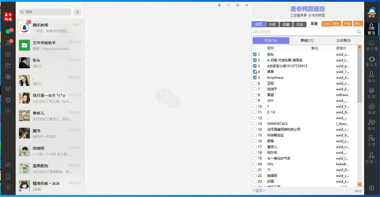 群发微信好友/群,群发支持:文本、图片、视频、链接、名片、小程序