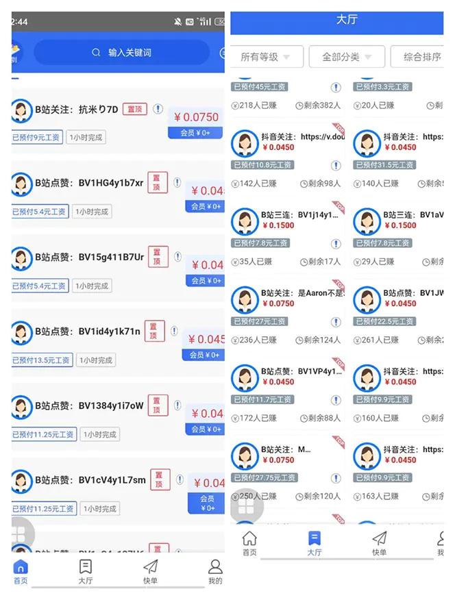 多量零花平台,主要是做哔哩哔哩点赞关注的,然后利用咱们的脚本自动去点赞挂机,亲测收益单窗口5-10,提现稳定,通过率高。