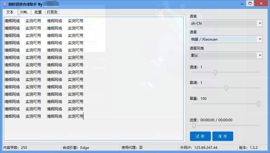 微软语音合成助手内置多个发音人,支持导入TXT文件、SRT字幕文件,保存导出编辑内容,支持停顿,自定义停顿时间,试听,局部试听,翻译,局部翻译,自动排版,自动标点,文本替换,敏感词提醒,敏感词替换,SSML多人语音混编等功能。
