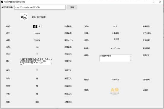 外面收费599一个月的查权重工具,说起抖音查权重,反正近期市面上非常热门的一个风口项目,做自媒体的懂的都懂,可以一键查询抖音账号的权重
